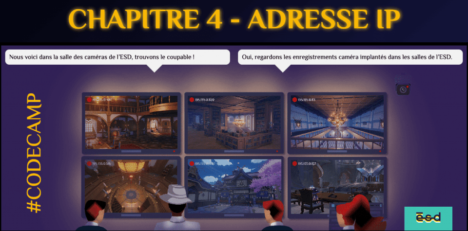 À l’issue du Code Camp, les étudiants maîtrisent les bases HTML, CSS, JS, et sont capables de développer une interface web et de manipuler le célèbre framework bootstrap. Les objectifs du Code Camp : Créatif : réaliser un projet créatif avec ces langages web,Pédagogique : acquérir une culture technique de base sur les langages web (HTML,CSS,JS),Collectif : Apprendre à se connaître avec du team building. Accompagné de Julien Blégean et de JB Dacquet, nos M1 devaient réaliser une BD interactive et animée en HTML/CSS/JS, répondant à un thème précis. Leurs réalisations Chapitre 1 : Le mot de passe Jouer ! Chapitre 4 : L'adresse IP Jouer ! Chapitre 5 : Les audios Jouer !